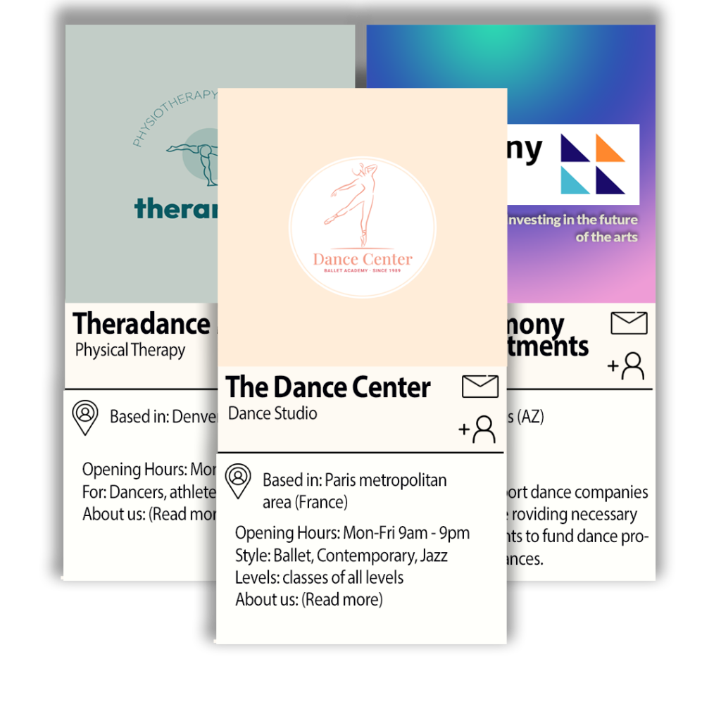 We highly encourage Dance Companies to create a Company Profile on Dancefolio. This can guarantee you a high visibility in the Dance Community and a lot of powerful growth tools for your business.